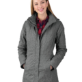 - Features a feminine silhouette with adjustable interior waist drawstring and back vent