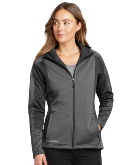 - Reflective heat transfer Eddie Bauer logo on right hem