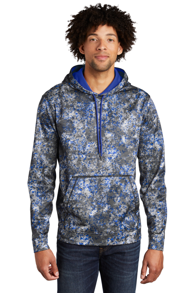 With its allover Mineral Freeze sublimated print, this moisture-wicking pullover combines a natural granite look with high-tech performance.